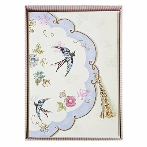 even engagement parties. And as we all know, every good party starts with a fabulous invitation! These Love in the Afternoon Invitations come with matching envelopes, adorned with golden tassels and little swallows that will send your invitations on their sweet way.