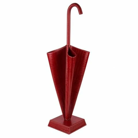 When it comes to decorative pieces in the finest Argentinian leather, this burgundy animal print leather umbrella stand is something for devotees of fine craftsmanship. With a cane leather wrapped handle, a solid leather base and four leather compartments, it can accommodate a family’s best umbrellas. This stand would look imposing at the front door with its clever umbrella shape.Â