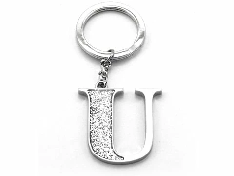 Silver Glitter ‘U’ Initial Keyring features: